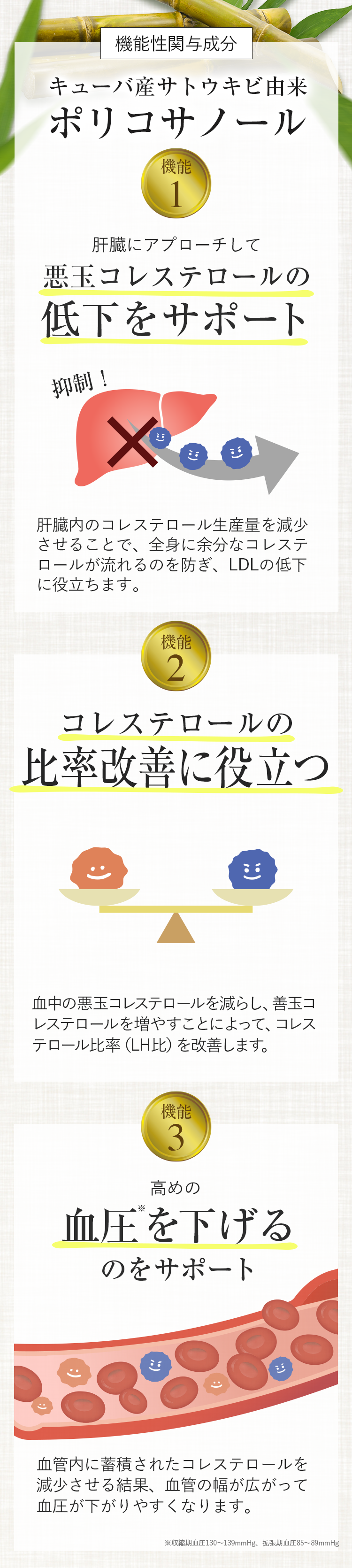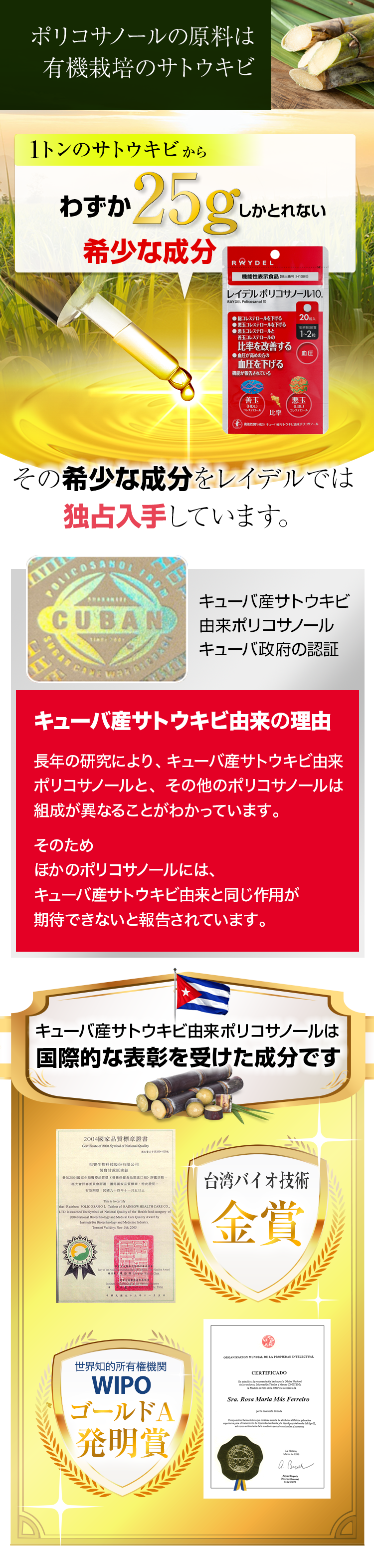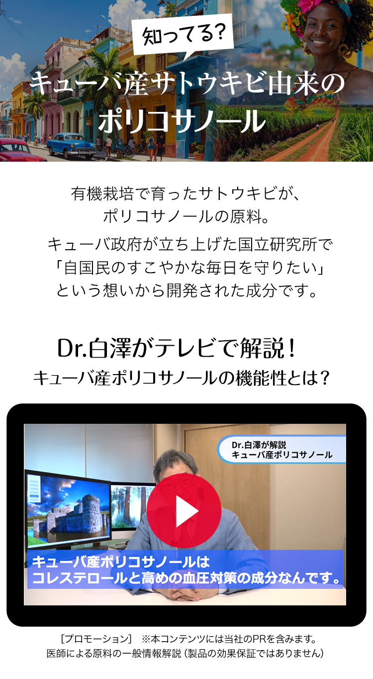 機能性関与成分 キューバ産サトウキビ由来ポリコサノール |